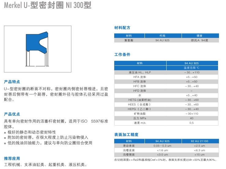 雙唇軸用U型圈NI300