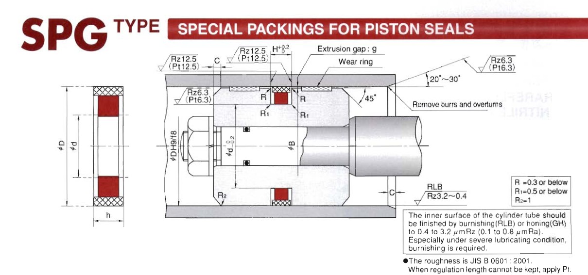 SPG型孔用密封是一種可大范圍應用的標準組合密封,外密封環(huán)材料是PTFE+青銅粉,內(nèi)支撐環(huán)材料邵爾80度丁氰橡膠NBR和邵爾70度氟橡膠FKM,壓力可達到35MPA,邵爾80度丁氰橡膠材料適用溫度:-40度---+100度,邵爾70度氟橡膠材料適用于溫度:-20度---+160度。