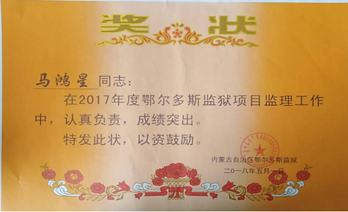 鑒于馬鴻星同志一貫兢兢業(yè)業(yè)、認真負責的工作態(tài)度和工作作風,建設(shè)單位還專門為他頒發(fā)了獎狀,給予其精神上的獎勵。