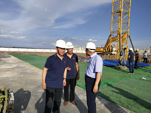分公司領(lǐng)導(dǎo)穆利和陪同董事長(zhǎng)兼總經(jīng)理陳有平等人到工地現(xiàn)場(chǎng)進(jìn)行檢查。