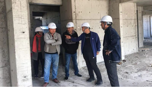 副總經(jīng)理高瑞軍(右二)在清宜林海岸二期工程針對(duì)“混凝土外觀質(zhì)量問(wèn)題”對(duì)各專業(yè)監(jiān)理工程師進(jìn)行技術(shù)指導(dǎo)