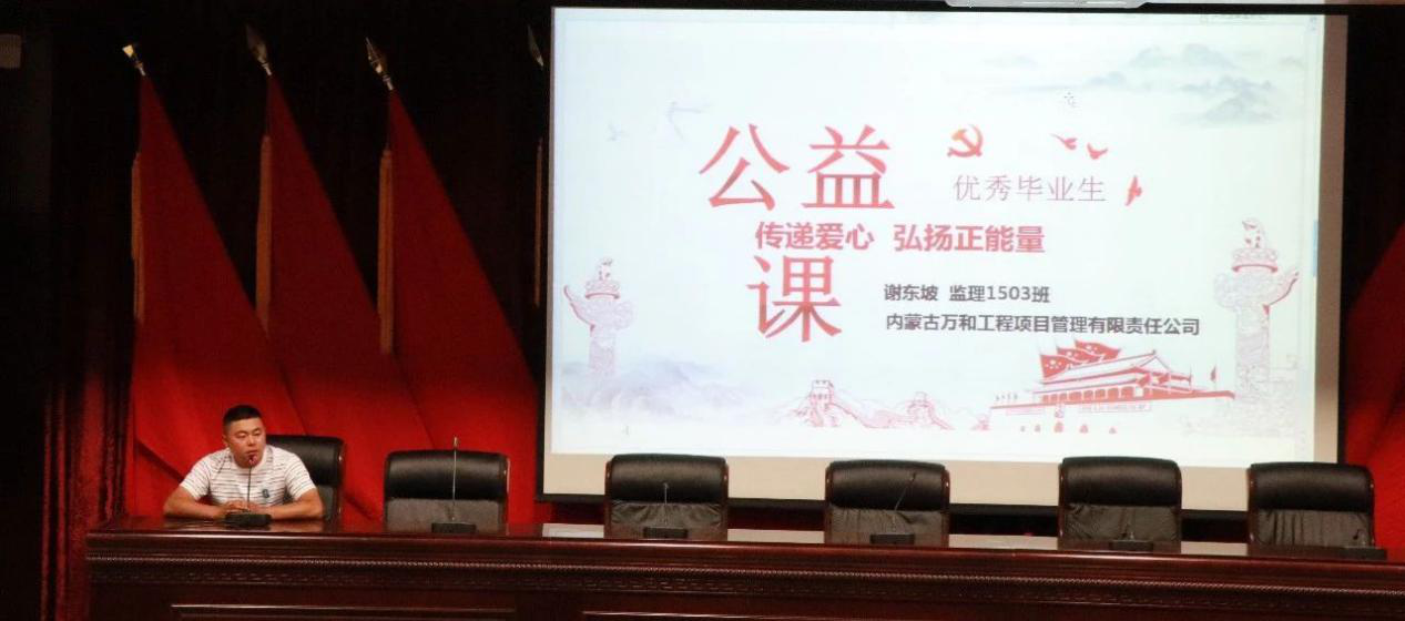 2019年6月,謝東坡受內(nèi)蒙古建筑職業(yè)技術(shù)學(xué)院工程管理學(xué)院邀請(qǐng)回校開(kāi)展《傳遞愛(ài)心,弘揚(yáng)正能量》公益講座,通過(guò):制定明確目標(biāo)、合理規(guī)劃時(shí)間、獨(dú)立思考、團(tuán)隊(duì)協(xié)作、積極主動(dòng)勇敢創(chuàng)新、服務(wù)社會(huì)等方面與同學(xué)們積極分享他所總結(jié)的大學(xué)生學(xué)生工作及社會(huì)工作經(jīng)驗(yàn)。作為一名中共預(yù)備黨員,他在座談中提到,堅(jiān)定正確的政治立場(chǎng),積極向黨組織靠攏,以正確的世界觀、人生觀、價(jià)值觀為指導(dǎo),堅(jiān)持中國(guó)共產(chǎn)黨的領(lǐng)導(dǎo),做到始終在思想上、行動(dòng)上與黨組織保持一致。