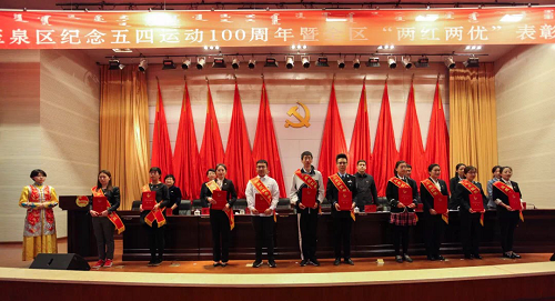 萬(wàn)和項(xiàng)管十七團(tuán)支部書記劉亞茹參加“兩紅兩優(yōu)”表彰大會(huì)(左四)