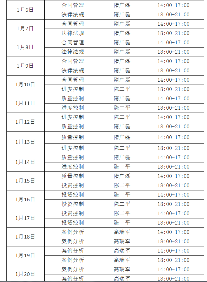 2021年度全國注冊監(jiān)理工程師培訓(xùn)課程表