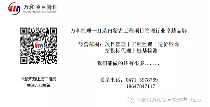 內(nèi)蒙古萬(wàn)和工程建設(shè)監(jiān)理有限責(zé)任公司成立于一九九九年一月,于2010年3月5日變更為內(nèi)蒙古萬(wàn)和工程項(xiàng)目管理有限責(zé)任公司,是中國(guó)建設(shè)部批準(zhǔn)的三甲級(jí)監(jiān)理企業(yè)(房屋建筑工程監(jiān)理甲級(jí)、市政公用工程監(jiān)理甲級(jí)、造價(jià)咨詢(xún)甲級(jí)),2009年經(jīng)內(nèi)蒙古住房和城鄉(xiāng)建設(shè)廳批準(zhǔn)取得萬(wàn)和工程項(xiàng)目管理實(shí)驗(yàn)室,2013年經(jīng)內(nèi)蒙古自治區(qū)人民防空辦公室批準(zhǔn)取得了人民防空資質(zhì),可承擔(dān)內(nèi)蒙古自治區(qū)抗力等級(jí)5級(jí)人民防空工程監(jiān)理業(yè)務(wù),2017年取得了招標(biāo)代理資質(zhì),同時(shí)也是“三標(biāo)一體”管理體系認(rèn)證和商標(biāo)注冊(cè)企業(yè)。2019年、2020年相繼取得了機(jī)電安裝、礦山工程、公路工程、水利水電工程監(jiān)理乙級(jí)資質(zhì)。主要從事房屋建筑、市政公用工程、機(jī)電安裝、礦山工程、公路工程、水利水電工程監(jiān)理、開(kāi)展相應(yīng)類(lèi)別的建筑工程的項(xiàng)目管理、技術(shù)咨詢(xún)、工程造價(jià)咨詢(xún)、招標(biāo)代理、政府采購(gòu)及地基基礎(chǔ)工程檢測(cè)等業(yè)務(wù),連續(xù)幾年被內(nèi)蒙古工商局授予“重合同、守信用”單位及“誠(chéng)信單位”,2008年被評(píng)為“中國(guó)建設(shè)監(jiān)理創(chuàng)新發(fā)展20周年工程監(jiān)理先進(jìn)企業(yè)”,2009年、2010年、2011年、2012年、2013年、2016年、2017年、2018年、2019年均被評(píng)為“優(yōu)秀建設(shè)監(jiān)理企業(yè)”。