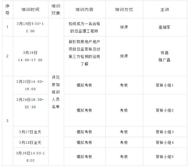 2)課時二分為兩部分,一部分講解新形勢下地產(chǎn)項目總監(jiān)答辯的內(nèi)容及相關(guān)技巧,另一部分講第三方檢測的維度、時間及簡述檢測內(nèi)容。